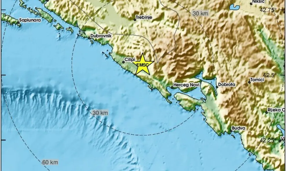 Tijekom noći zabilježena su tri potresa na području Hrvatske. Prvi, jači potres magnitude 3,6 po Richteru pogodio je jug zemlje, u blizini granice s Bosnom i Hercegovinom. Prema podacima EMSC-a, epicentar je bio na dubini od jednog kilometra, 73 kilometra zapadno od Podgorice i 20 kilometara od Trebinja.