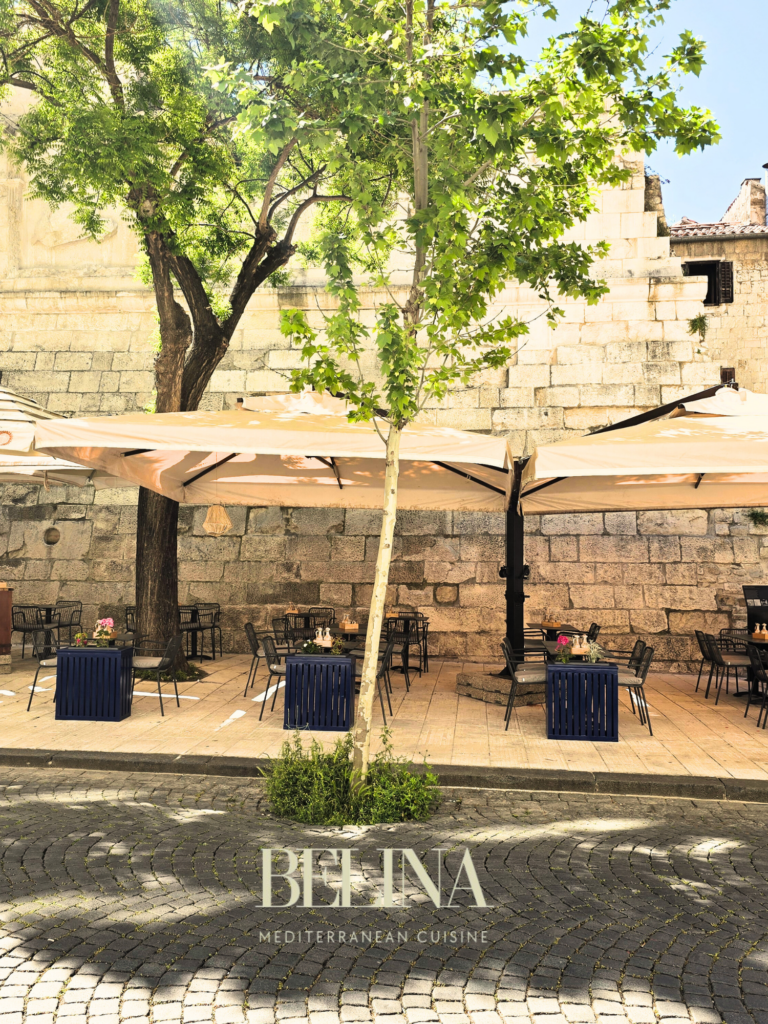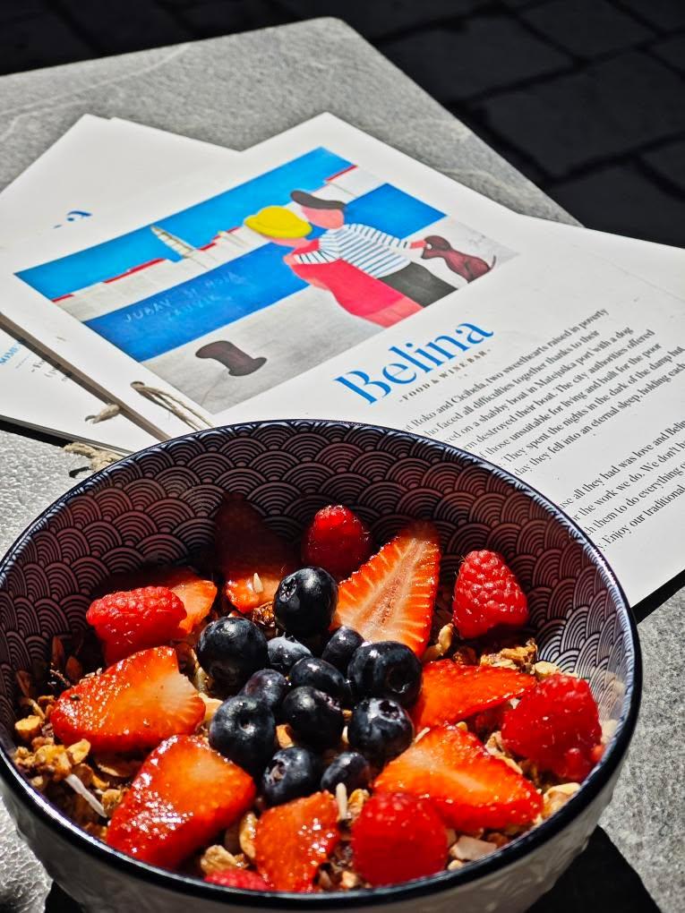 Za one koji vole laganije ritmove i mirna jutra, Belina nudi doručke i bruncheve pod krošnjama, skrivena od gradske vreve. Jelovnik spaja internacionalne klasike s lokalnim sastojcima — od Eggs Benedicta s dalmatinskim pršutom do granole s voćem, lososa s guacamoleom, prirodnih sokova i svježih croissanta. I ovdje se priprema pašticada — jer gdje god došli, priča ostaje ista.