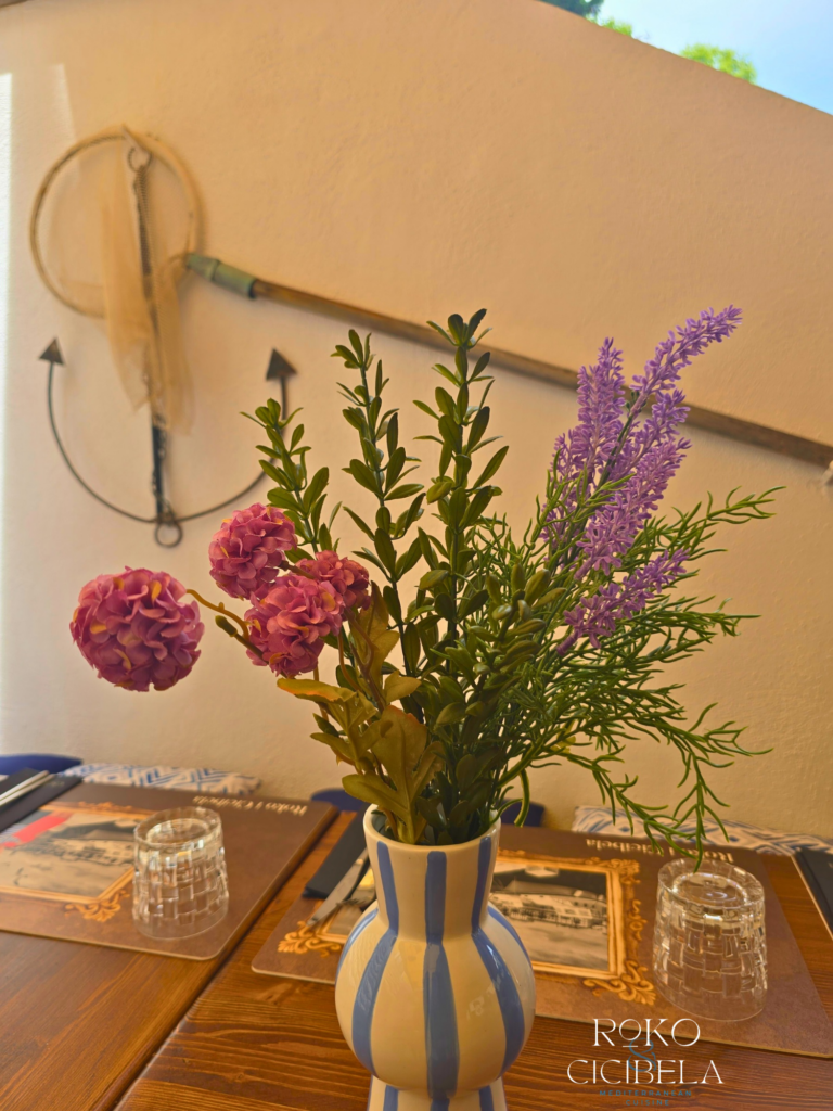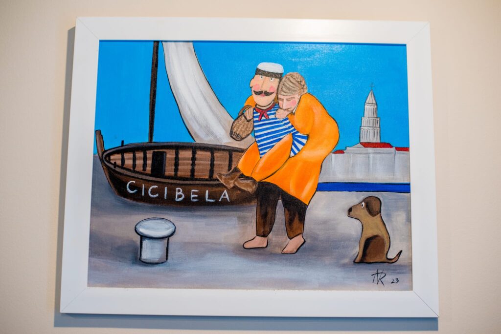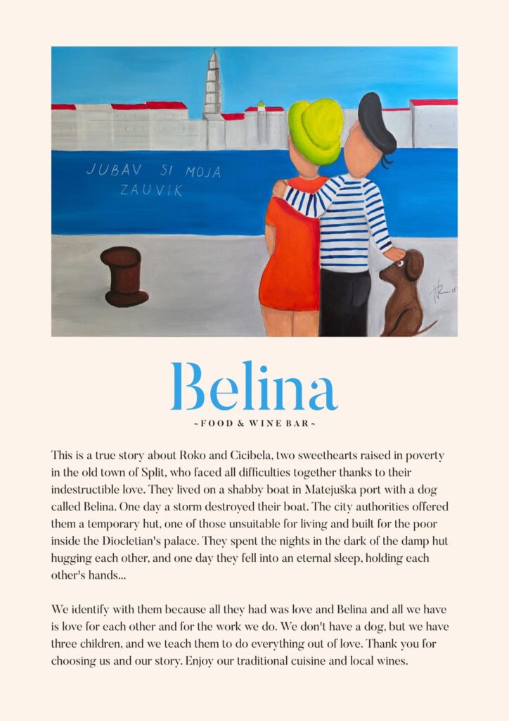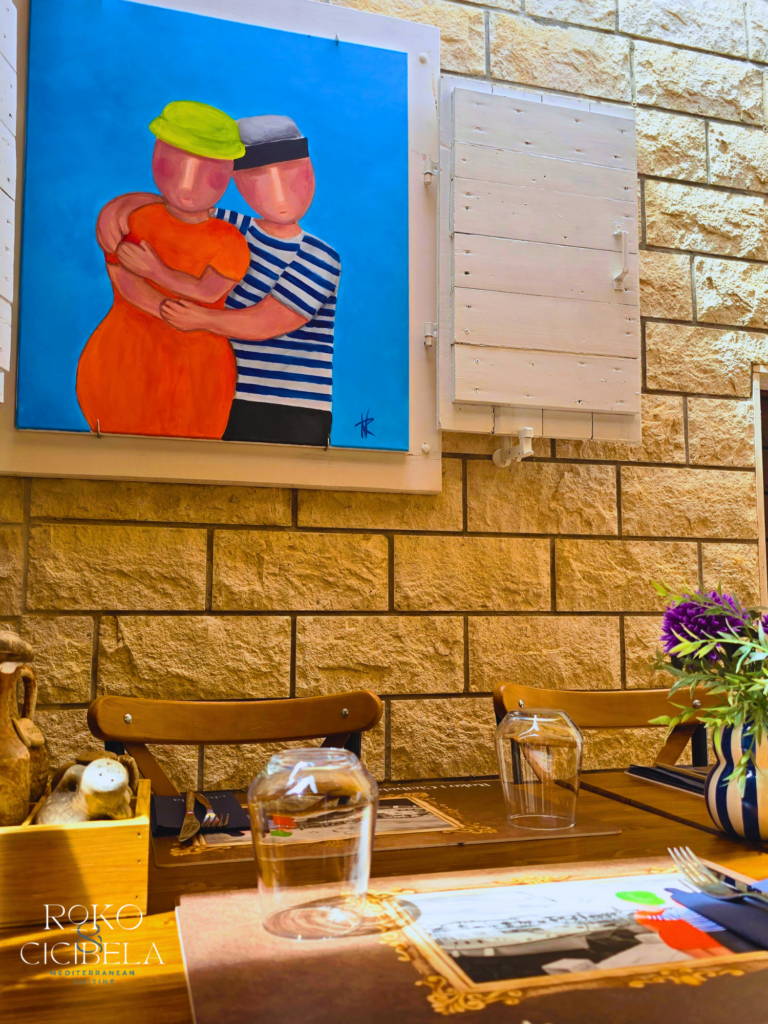 Kroz suradnju s mladom splitskom umjetnicom Anom Vidović Roguljić, vlasnici restorana udahnuli su novi život tradicionalnim likovima iz dalmatinske priče. Ana je osmislila i ilustrirala moderne verzije Roka, Cicibele i Beline, koji danas krase zidove i jelovnike sva tri restorana. S minimalističkim potezima, puno duha i autentičnim dalmatinskim senzibilitetom, ovi likovi nisu samo dekoracija — oni postaju dio doživljaja, vizualna pripovijest koja prati svaki obrok.