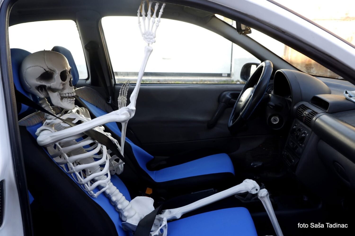 Jedan vlasnik vozila iz Trilja dosjetio se zanimljivog načina da podrži bojkot trgovina koji se u petak održava u cijeloj Hrvatskoj. Umjesto standardnih namirnica, na suvozačkom sjedalu svog automobila postavio je kostur