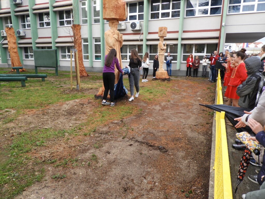 Skulpture su otkrile učenice škole Antonia Marović, Sara Bulović, Nora Križanac i Lana Grčić, koje su napisale prekrasne pjesme na temu skulptura.