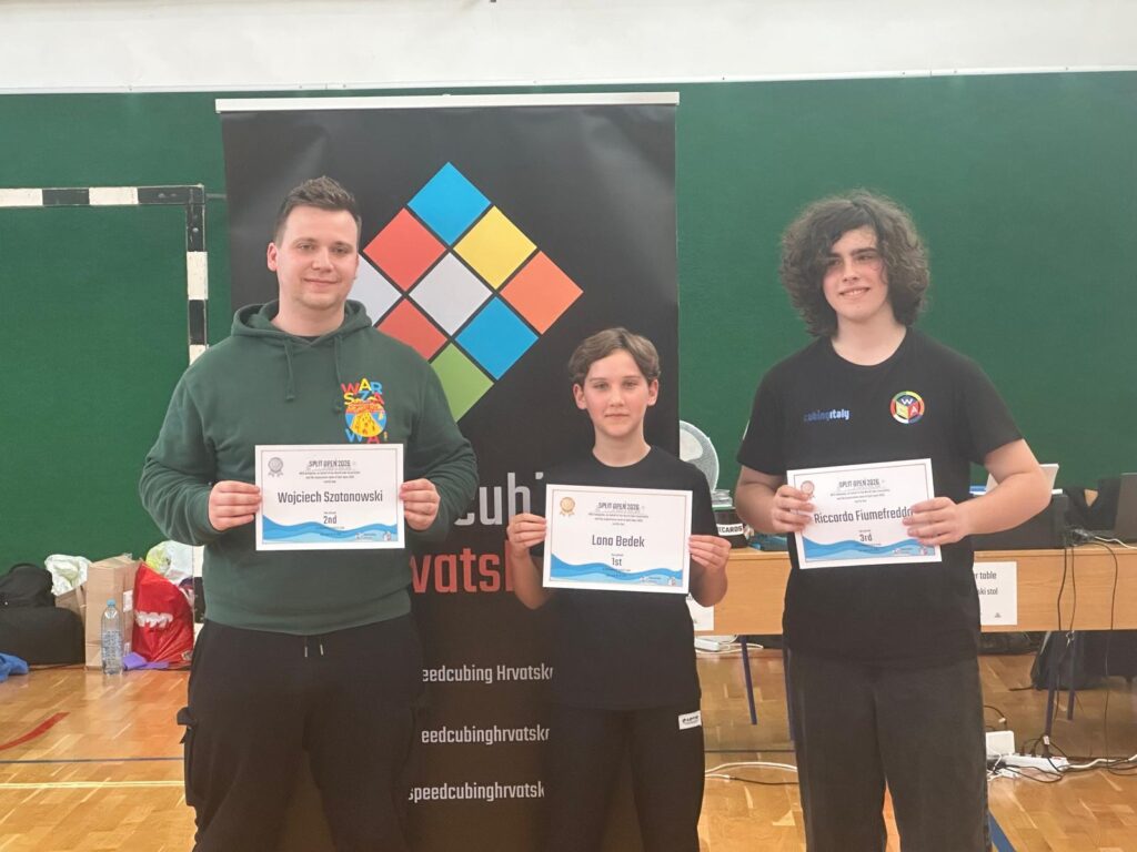 U glavnoj disciplini natjecanja klasičnoj 3x3x3 Rubikovoj kocki pobijedila je dvanaestogodišnja Lana Bedek iz Zagreba, aktualna hrvatska rekorderka po prosjeku u ovoj disciplini, ispred Poljaka Szatanowskog i Talijana Riccarda Fiumefredda. Od ostali hrvatskih natjecatelja do postolja su stigli: Erin Pernar drugo mjesto u Megaminxu te Bruno Ivančić drugo mjesto u Square-1 i treće mjesto u kocki 4x4x4.