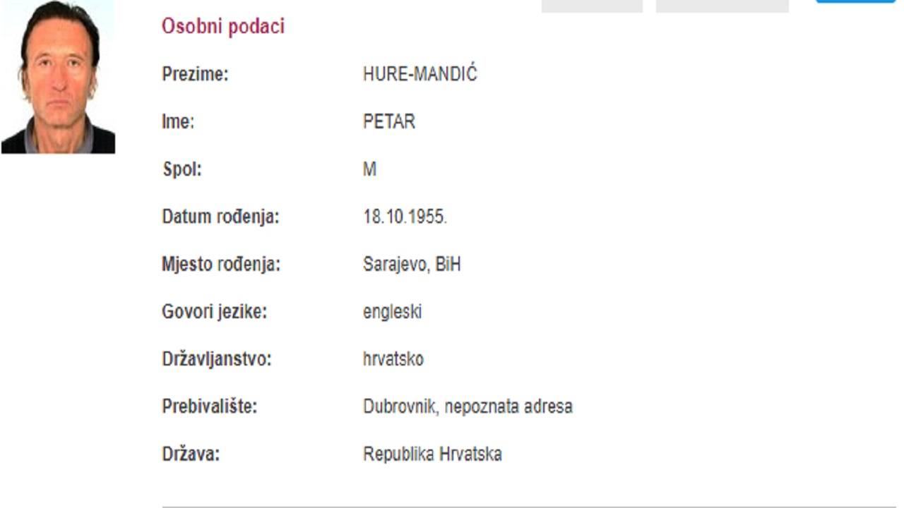 Policijskoj upravi dubrovačko-neretvanskoj u subotu, 20. listopada, prijavljen je nestanak hrvatskog državljanina Petra Hure-Mandića, rođenog 18. listopada 1955. g. u Sarajevu, BiH, s prebivalištem u Dubrovniku.
