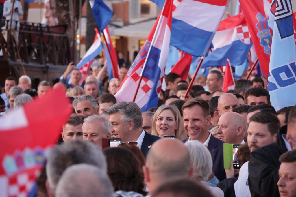 HDZ i Andrej Plenković održali su skup u Splitu pet dana prije izbora. Skupilo se tako simpatizera i članova HDZ-a koji su velikim ovacijama pozdravili svog čelnika u lovu na treći mandat.