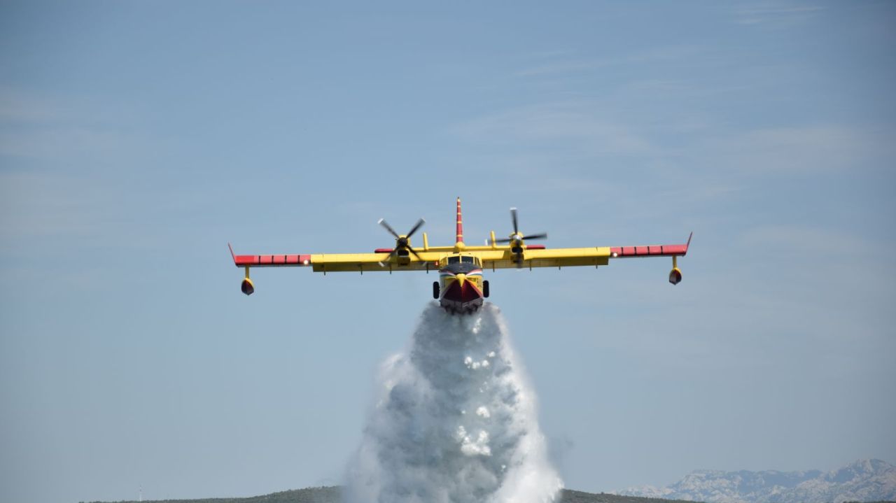 Četiri Canadaira CL-415 i tri Airtractora AT-802 iz sastava Protupožarnih namjenski organiziranih snaga Oružanih snaga RH upućena su u popodnevnim satima u akciju gašenja požara pokraj mjesta Mokro Polje kod Knina u Šibensko-kninskoj županiji.