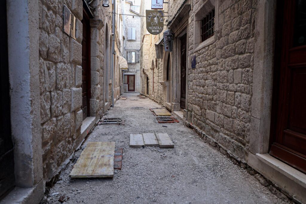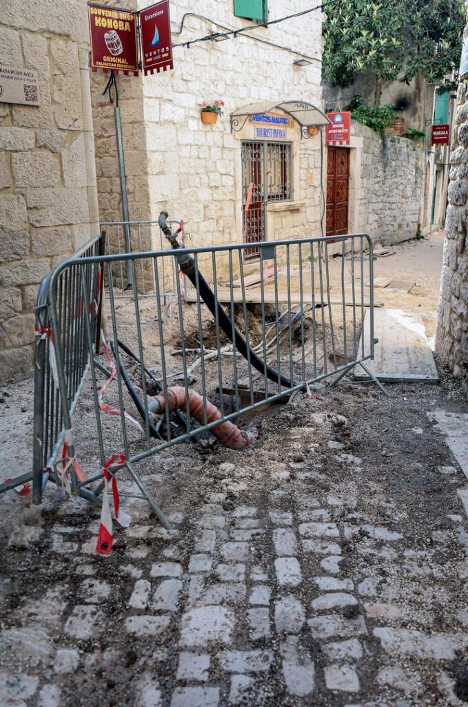 U staroj gradskoj jezgri Trogira, koja je pod zaštitom UNESCO-a, radi se na obnovi vodovoda i kanalizacije, piše večernji.hr