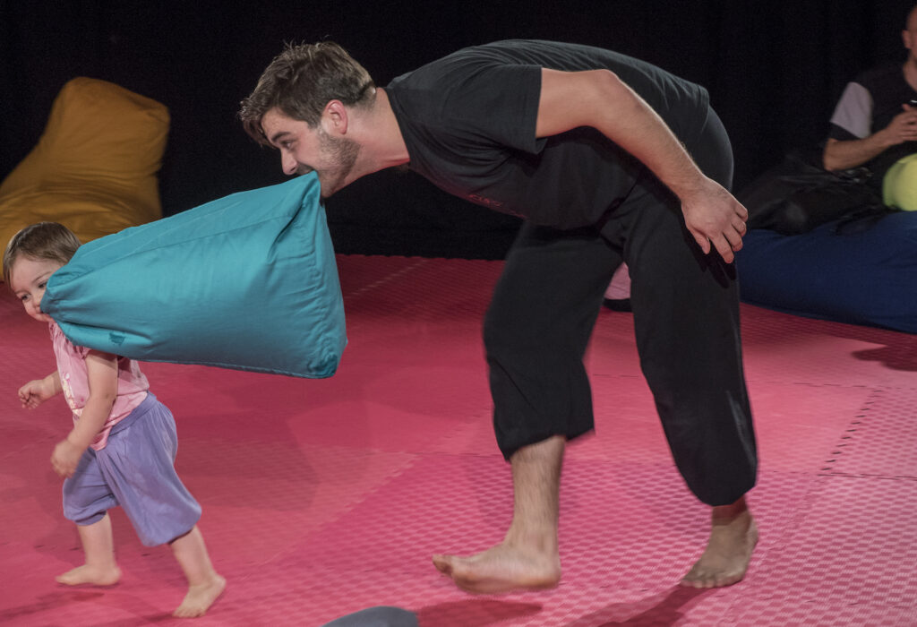 BAJA BUF – događanje, predstava i igra, kreirana za i sa bebama starosti 10-24 mjeseca. Odvija se u velikom i mekanom prostoru koji nudi mirno i sigurno okružje. Što se događa kad beba dobije potpunu slobodu u sigurnom prostoru sa osobom koja prati i reflektira svaki njihov pokret, zvuk, raspoloženje? Roditelji / staratelji ostaju prisutni u prostoru, dok djeca shvaćaju činjenicu da su zapravo ona sama “za volanom”. Režirajući svoj vlastiti pokret bebe stupaju u interakciju sa izvođačima i nepredvidljivi i zaigrani dijalog slobodnog tijeka govora tijela kreće…