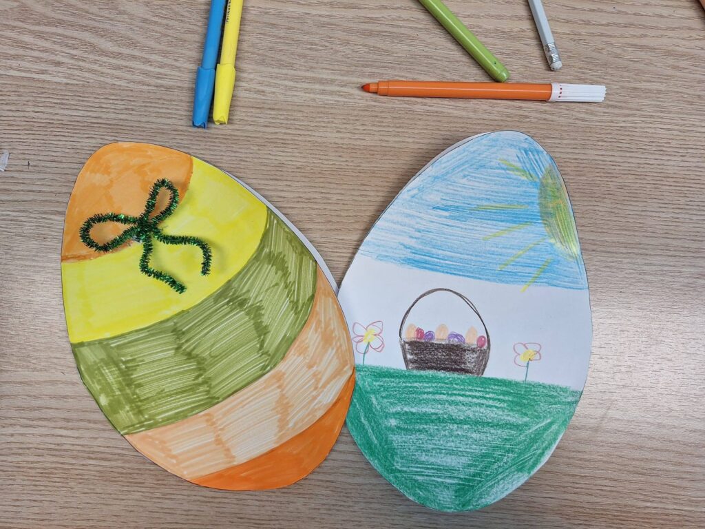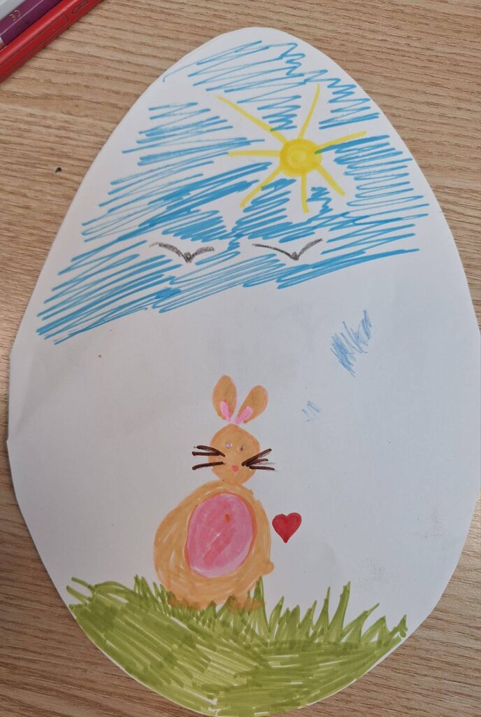 Djeca su na radionicu donijela pisanice, proljetne grančice, košarice i uskrsne motive, a sve je to postalo dio male dječje blagdanske priče. Kroz crtanje i razgovor nastajali su motivi uskrsnih jaja, zečića, košarica, proljetnog cvijeća i sunca, a svaki crtež bio je poseban i pokazao koliko djeca kroz maštu i boje mogu izraziti osjećaj radosti i topline koji Uskrs nosi.