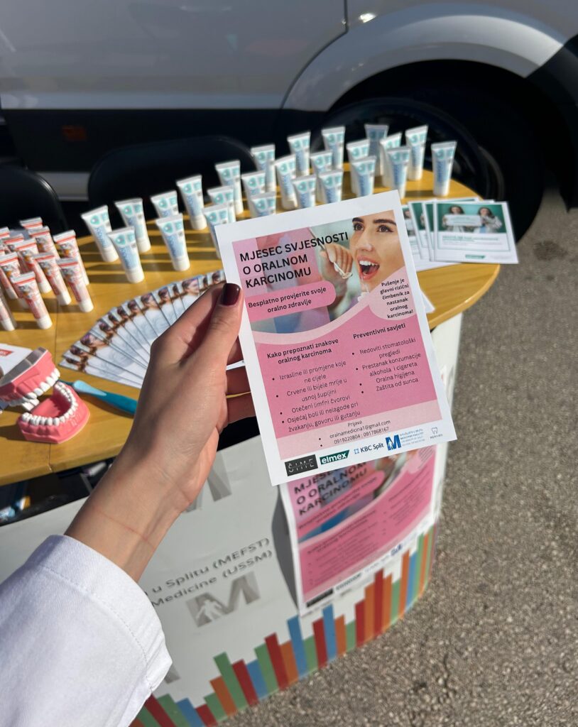 Odjel za dentalnu medicinu Zavoda za maksilofacijalnu kirurgiju KBC-a Split održao je javnozdravstvenu akciju „Je li grijani duhan bolji odabir?“ u sklopu Svjetskog tjedna svjesnosti o oralnom karcinomu i karcinomu glave i vrata na splitskoj Rivi. Pregledi su se provodili u mobilnoj stomatološkoj jedinici Zubobusu koji je osigurao Medicinski fakultet u Splitu, odnosno prodekan za studij Dentalne medicine izv. prof. dr. sc. Ivan Galić. Javnozdravstvenoj akciji odazvalo se nešto više od 50 građana koji su iskoristili mogućnost besplatnog preventivnog specijalističkog pregleda.