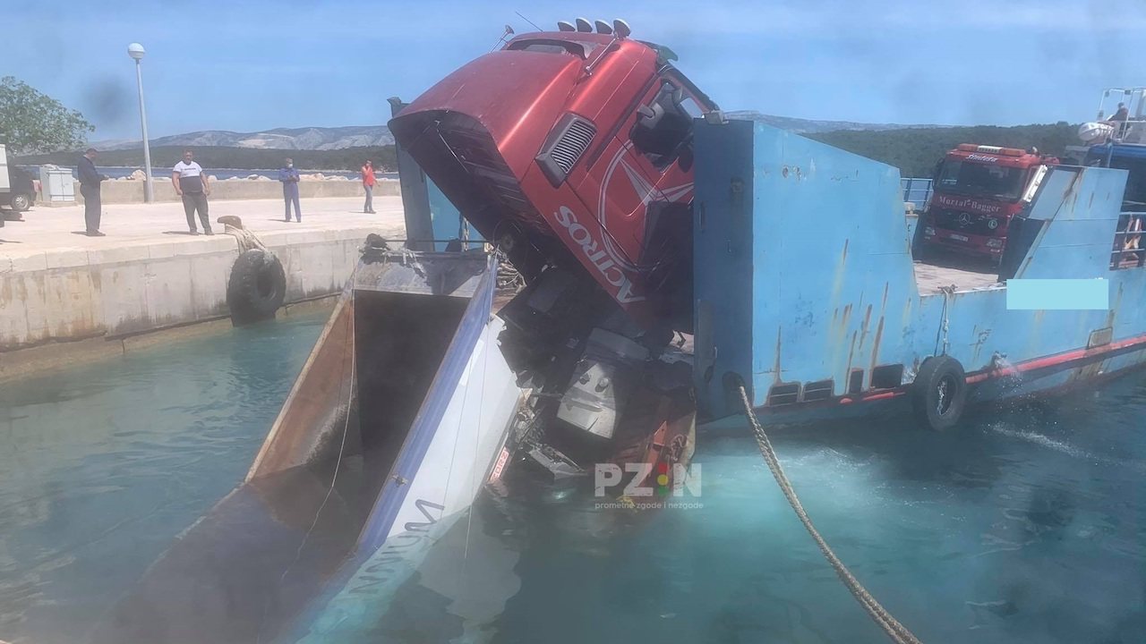 Hvar: Kamion pun asfalta pao s trajekta u more