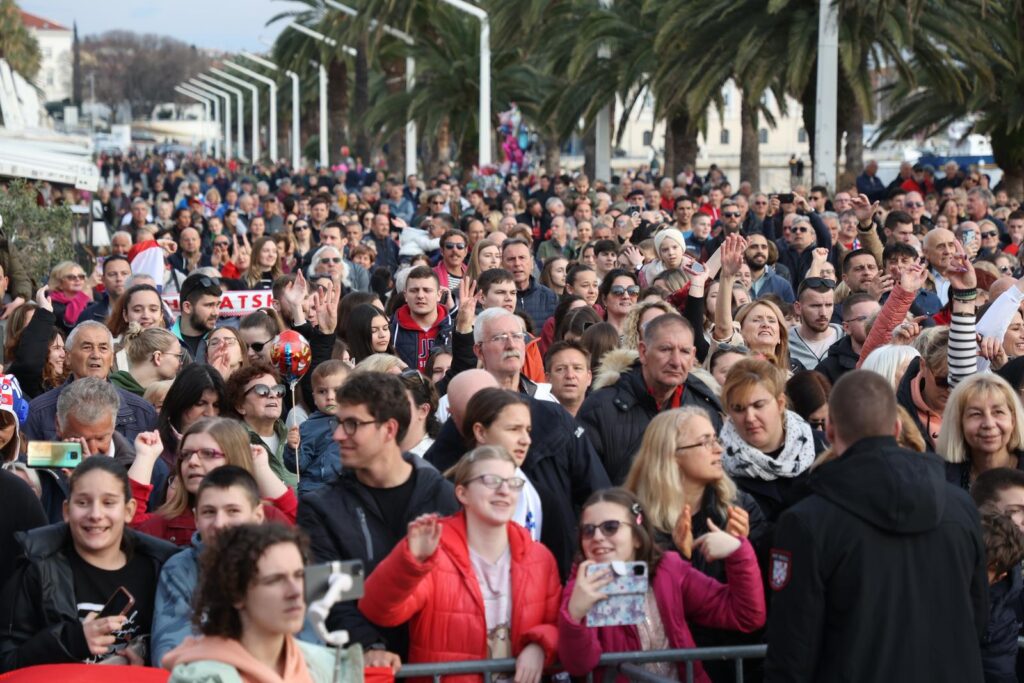 Atmosfera postaje sve uzbuđenija kako se broj navijača i zastava povećavao, a pjesma je postala najglasnija kada su se na pozornici pojavili oni zbog kojih je cijela Hrvatska osjetila još malo ponosa ovo vrijeme.