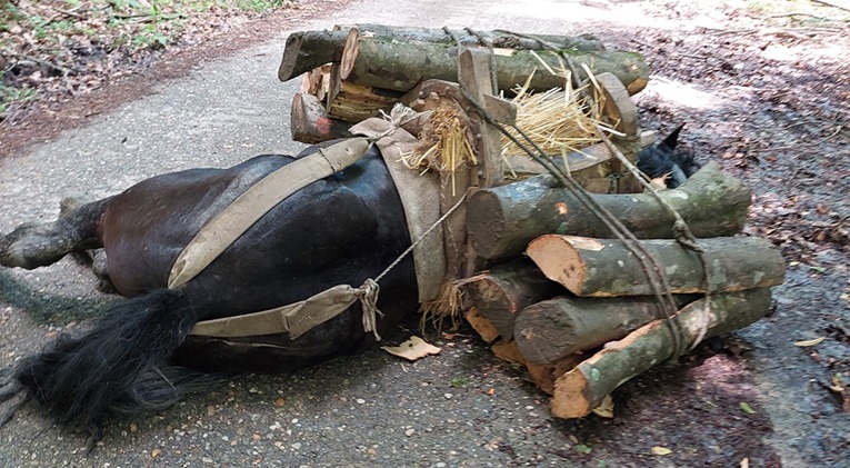 Uznemirujući slučaj zlostavljanja konja u Podgariću: Jednog konja mlatio granom, dok se drugi srušio pod teretom drva