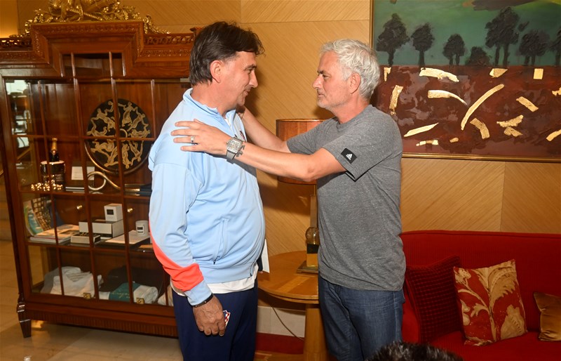 Za stolom u hotelskom lobiju pridružio im se i član stručnog stožera Mario Mandžukić, a Mourinho se prethodno pozdravio i s Domagojem Vidom, Mateom Kovačićem i Šimom Vrsaljkom.