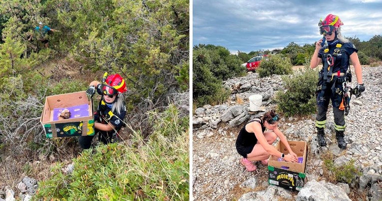 Vatrogasci s Brača spasili pet napuštenih štenaca, netko ih bacio niz liticu