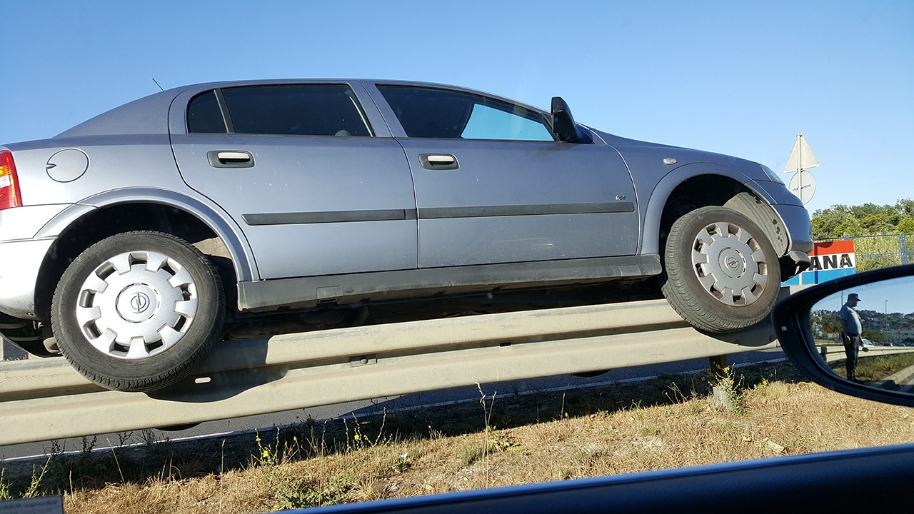 Ma, da je pokušavala, ne bi joj pošlo za rukom! Nema šanse! Vozačica Opel Astre je jutros nešto iza 7 sati parkirala na zaštitnu ogradu, al doslovno! Kako je u tome uspjela, vjerojatno ni sama ne zna! Sve se dogodilo na kolniku Državne ceste D8, nedaleko skretanja za Žrnovnicu, a srećom, nitko nije ozlijeđen. Rezultat svega je samo materijalna šteta.