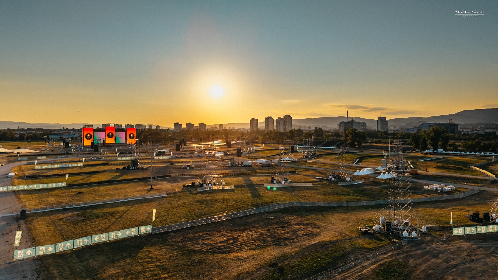 Objavio je fotografije pozornice na kojoj su u tijeku završni radovi, kao i snimku iz zraka koja prikazuje Hipodrom s već postavljenim ogradama i šatorima. Uz video je dodao i stih iz svoje pjesme: “Prospi na nas radost sa visina…”.