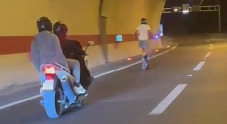 U kasnim večernjim satima, nepoznata osoba snimljena je kako vozi električni romobil po brzoj cesti Solin–Klis, i to kroz jedan od tunela.