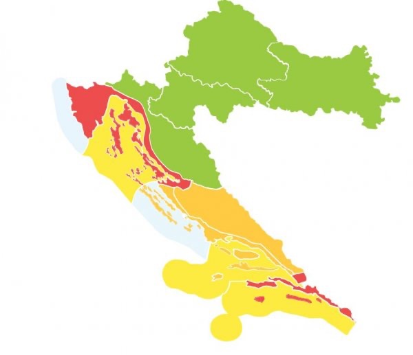 Za riječku i dubrovačku regiju Državni hidrometeorološki zavod (DHMZ) izdao je crveni alarm zbog iznimno visokih temperatura i mogućeg toplinskog vala. Očekuje se da će maksimalne temperature prelaziti 35 °C, dok minimalne neće padati ispod 23 °C. Ostatak obale je pod narančastim alarmom, što znači da su i tamo očekivane visoke temperature, ali nešto blaže.