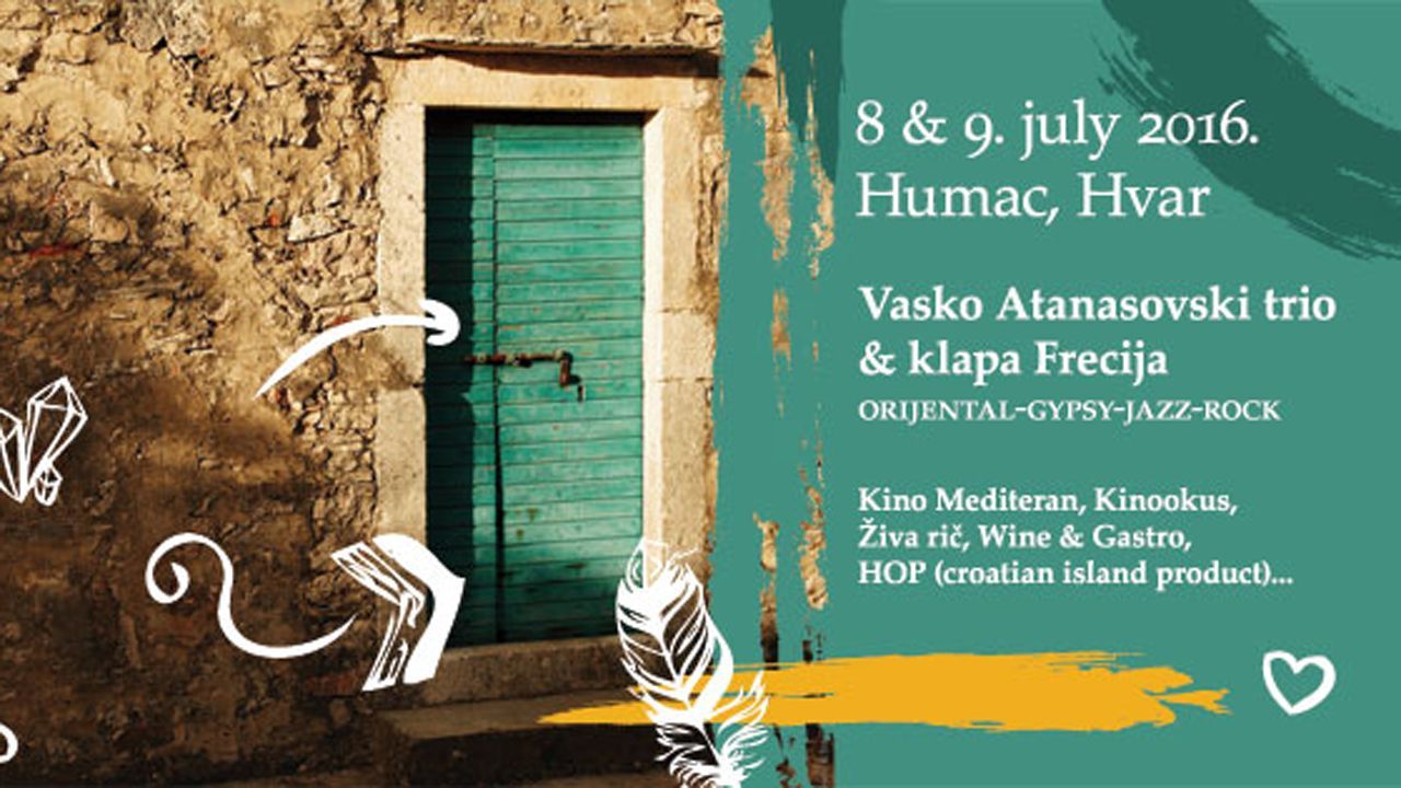 Kroz popodnevne sate posjetitelji će moći razgledati izložbu slika priznatog umjetnika sa stalnom adresom u Jelsi, Vuka Jevremovića. Izložba će biti postavljena na putu do Etno zbirke sve do kraja subotnje večeri a moći ce se razgledati i u večernjim satima pod svjetlima reflektora. Ovom prigodom Etno zbirka će biti otvorena za posjetitelje cijelo vrijeme.Program po danima:U petak navečer je službeno otvaranje festivala uz prikazivanje video uratka “Etno eko sela otoka Hvara” u suradnji s LAG Škoji i Kinom Mediteran. Nešto malo dalje, u prirodnom ambijentu starih kamenih balkona i dvorišta, program se nastavlja uz poeziju u dijalektu „Ziva rič“, pod vodstvom voditeljice Vlatke Buj. Dio poezije će biti popraćen zvukovima Danteove akustične gitare s kojom će se nastaviti i završiti ova predivna ljetna večer.U subotu nas također očekuje sajam HOP kao i izleti u Grapčevu špilju (09:00, 17:30).U 21:00 započinje večernji dio programa uz suradnju Kina Mediteran (Split) i Kinookusa (Dubrovnik), a tema predavanja i popratne video projekcije je ujedno i tema ovogodisnjeg festival: Slowfood, Foodtourism.Po završetku projekcije očekuje nas spektakularni koncert, ujedno i glavno događanje ovogodišnjeg festivala, koncert Vasko Atanasovski tria (Slo) i ženske klape Frecija (Jelsa). Ova eksperimentalna suradnja nastala je prošlog ljeta u sklopu Jazzelsa festivala na oduševljenje svih prisutnih, a nastavlja se ovaj vikend na Humcu uz najavu snimanja zajedničkog albuma.Prijevoz iz Jelse je besplatan, kao i povratak nazad s Humca. Vozni red kao i ostale informacije mogu se pronaći na fb stranicama festivala: Etno Hvar festival.Ovogodišnje izdanje EHF održava se u suradnji s TZ Jelsa, Općinom Jelsa i LAG Škoji, te uz sponzorstvo Čazmatrans Hvar.”