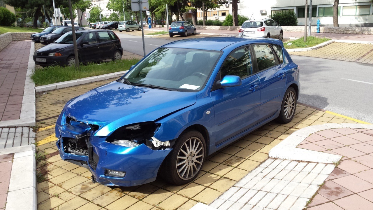 invalidnim osobama fotografirali Mazdu 3 koja je evidentno sudjelovala u prometnoj nesreći.