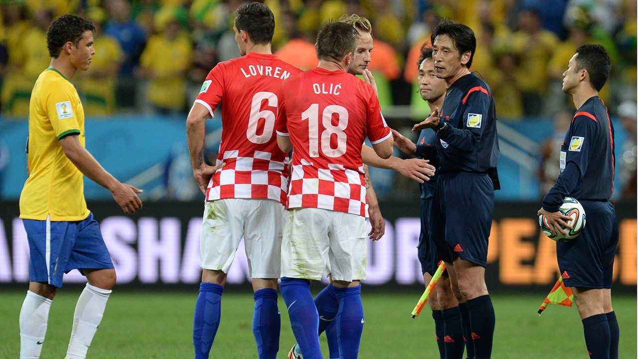 Nishimura je u toj utakmici jedan blagi kontakt između Dejana Lovrena i Freda u kaznenom prostoru okarakterizirao prekršajem, te je dosudio jedanaesterac iz kojeg je Brazil poveo 2-1. Brazil je kasnije utakmicu dobio s 3-1, a Nishimura je osim zbog dosuđenog spornog jedanaesterca prozvan i da slabo govori engleski jezik.