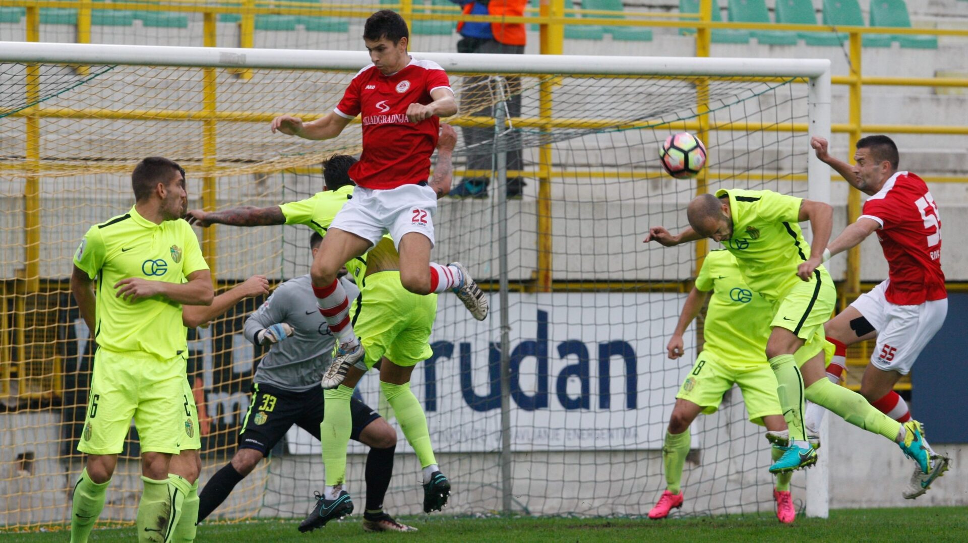 6 – Veliku šansu imao je Boljat odmah na početku susreta. Crveni su zaradili prvi korner, ubacio je Grubišić, Boljat je tukao glavom s nekih 10 metara, a vratar Ivušić je uspio odbiti loptu u stativu i tako spasiti siguran pogodak