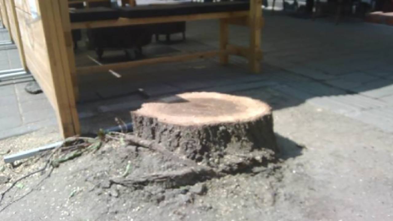 Uz opravdanje da se ‘dize behaton’ ili tome slicno, i ova dva drveta su zauvijek nestala… Postoji resenje za one koji zele da ga nađu kao sto je basta kafica preko puta: ogradi se stablo betonskom kadicom i napuni zemljom…