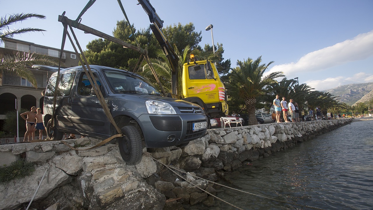 krenu automobilom unatrag, greškom mjenjač ubacili u “prvu” i umalo završili u moru.