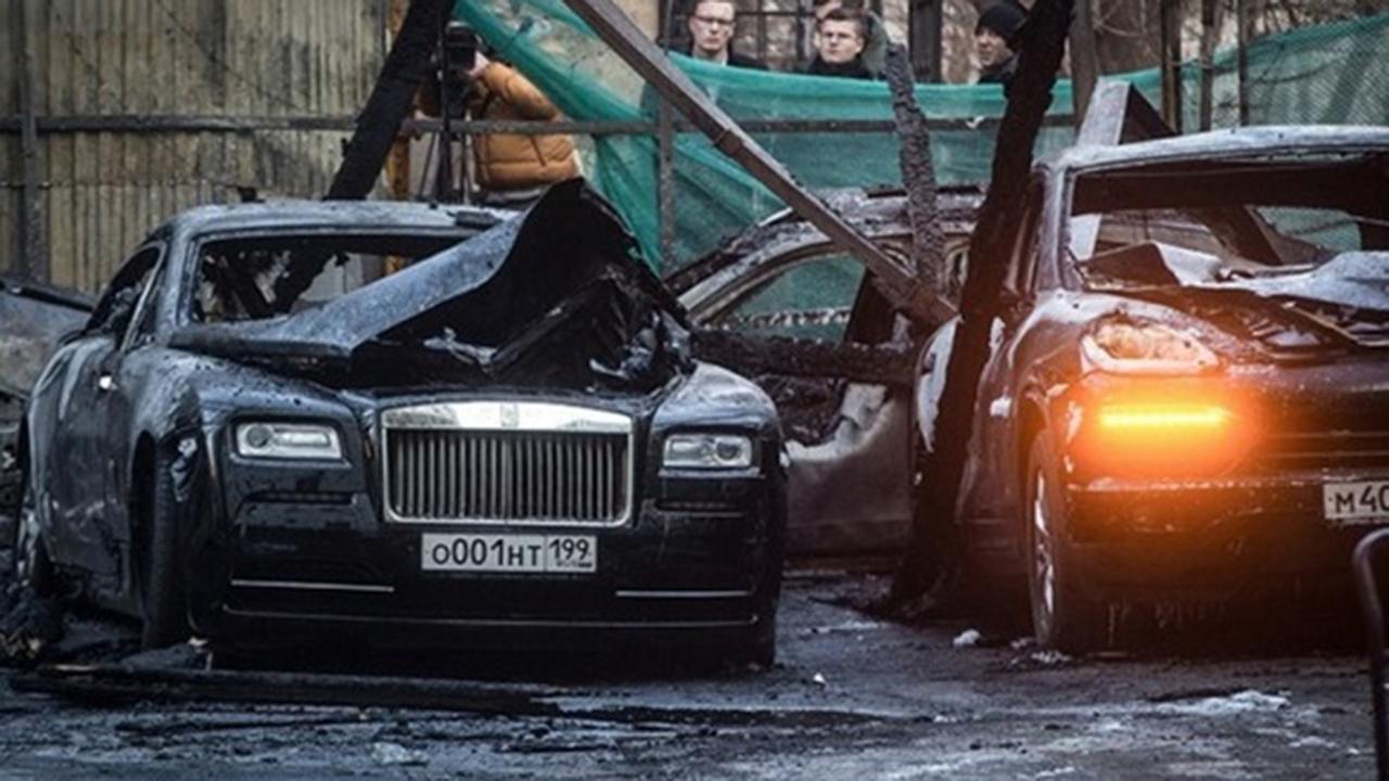 Ruska televizija prikazala je u petak ujutro goleme plamenove na privatnom parkiralištu, a sva su vozila pripadala jednome vlasniku. Prema prvim tragovima istrage požar je podmetnut, ustvrdio je televizijski kanal Rossia 1.