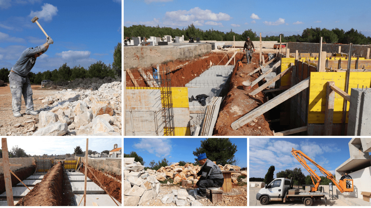 Devedeset radnih dana očekivani je vremenski raspon izvođenja svih radova na groblju, a dotad će i djelatnici Vir održavanja imati posla na održavanju grobljanskog prostora (postavljeni su novi zvučnici na mrtvačnici), odnosno na lomljenju i obradi kamena za zidove.