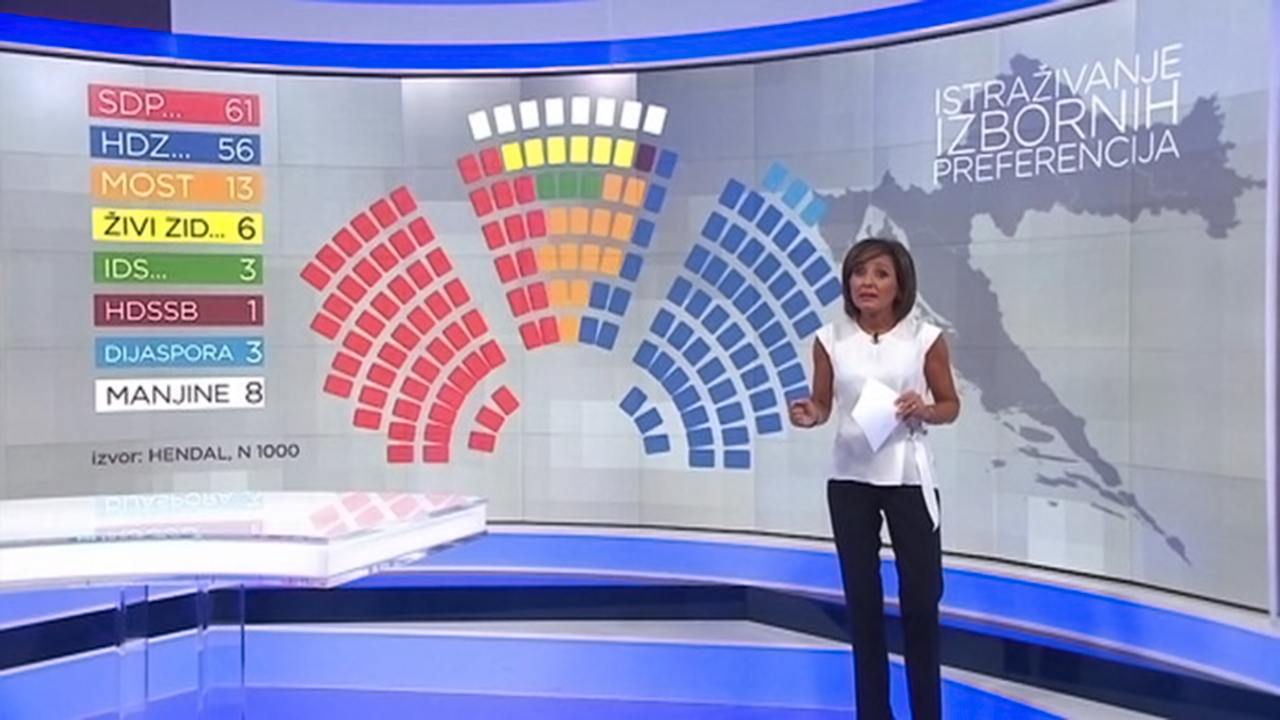 U gornjim primjerima smo vidjeli najbolji, odnosno najgori scenarij dviju najvećih stranaka, a što ovisi o preraspodjeli graničnih mandata. No prema najrealnijem scenariju najviše prema ovoj anketi osvaja SDP – 61 mandat. HDZ je na 56, Most na 13, Živi zid na šest. IDS je na svoja tri mandata, a na jedan mandat pada Glavašev HDSSB. To je ukupno 140 zastupnika, a kad se njima pridoda osam manjinaca i tri zastupnika dijaspore, dolazi se do brojke od 151.