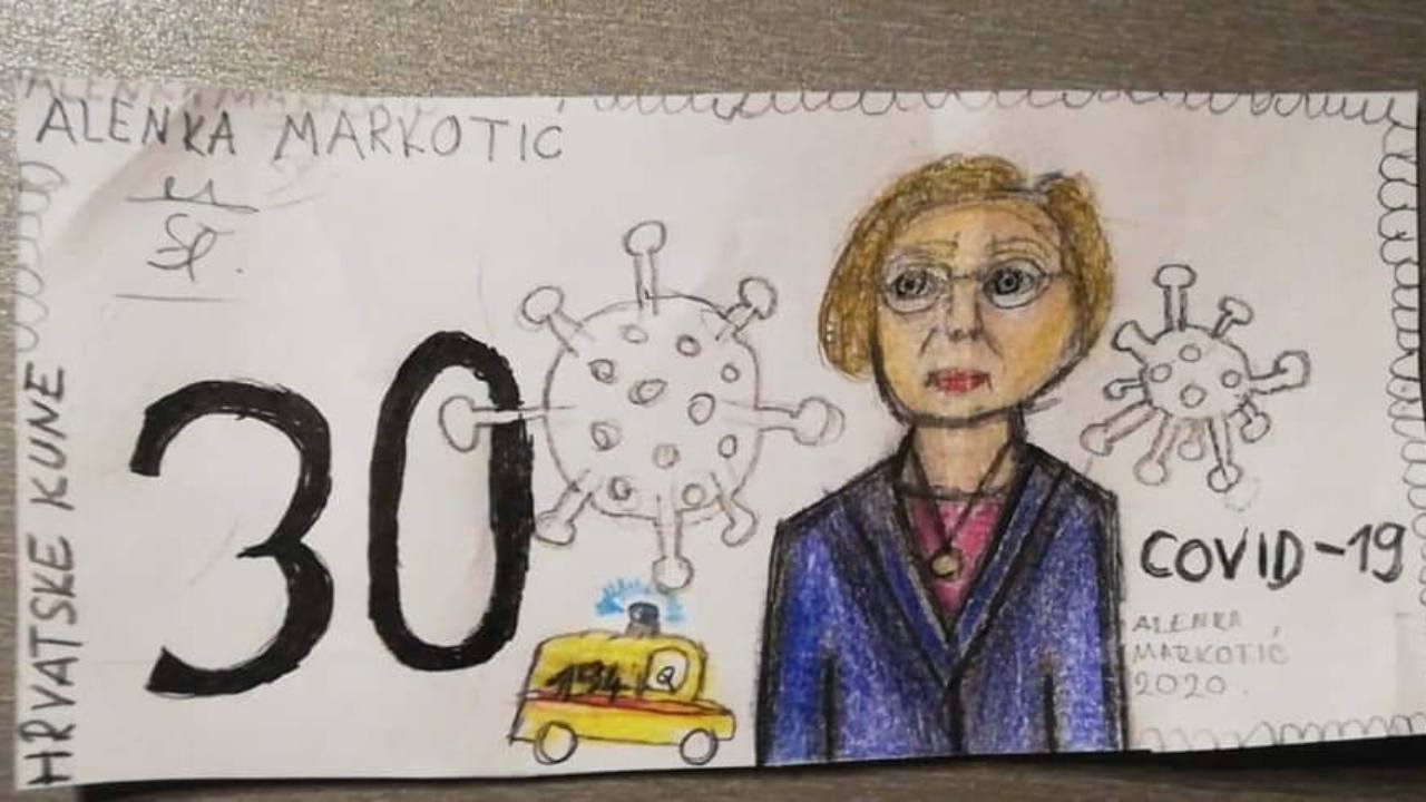 – Kaže sunce tetino da na novčanice idu samo veliki ljudi… Također, primjetila je da na novčanicama nema žena. Zato evo jedne velike, na društvenim je mrežama napisala Željana Šikić i otkrila veliku gestu Eve – crtež novčanice u vrijednosti od 30 kuna na kojoj je, ni više ni manje, nego Alemka Markotić, ravnateljica Klinike za infektivne bolesti ‘Dr. Fran Mihaljević’ iz Zagreba.
