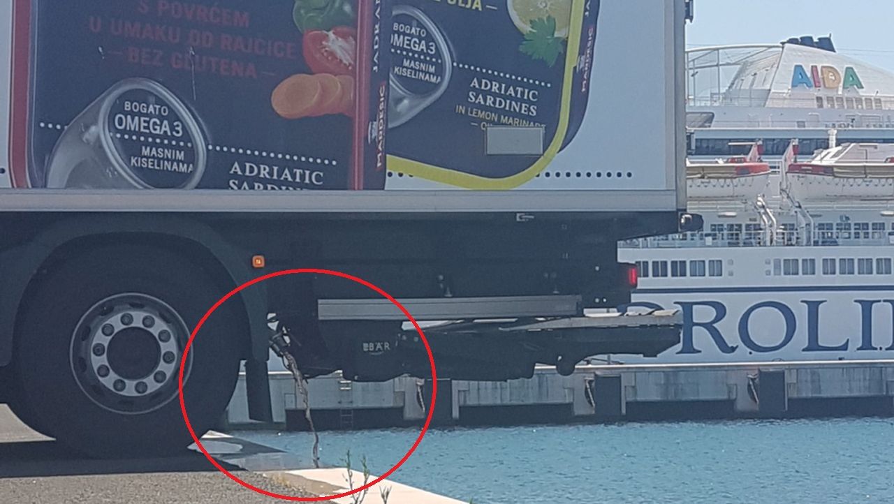 – To nije nikakva prljava voda, masnoća, ni ulje nego led. Led koji se otopio, mi tu moramo ispustiti prije nego kamion uđe u trajekt.