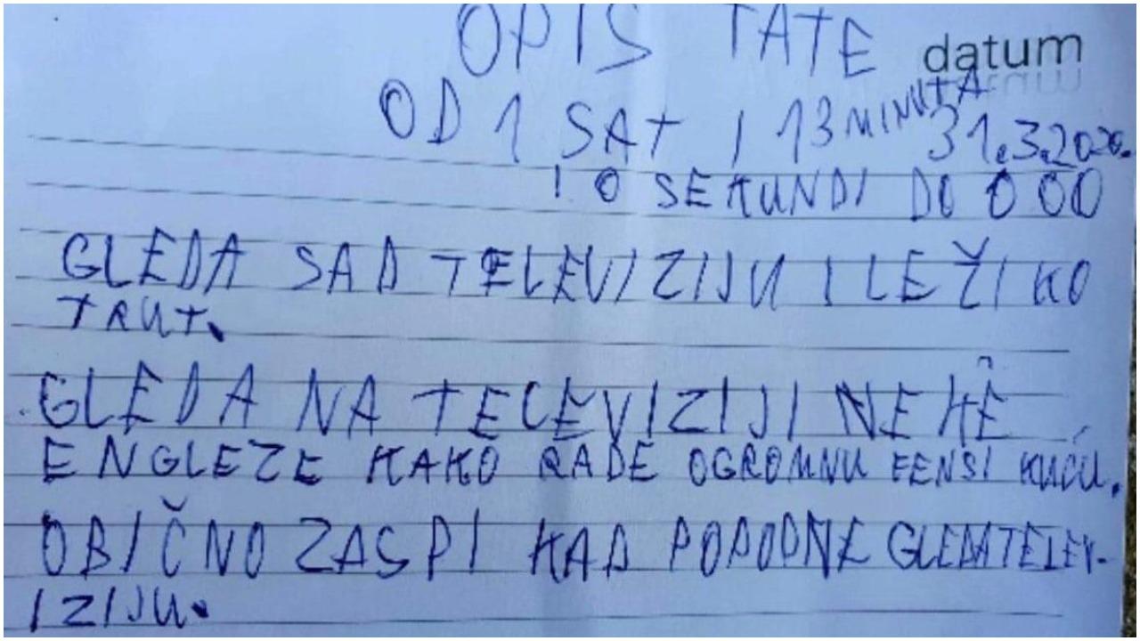 – Mama se kasno digla. Pije kavu za ručak, a nema ručka. Korona je poremetila, napisao je dječak o mami, a potom je opisao i tatu.