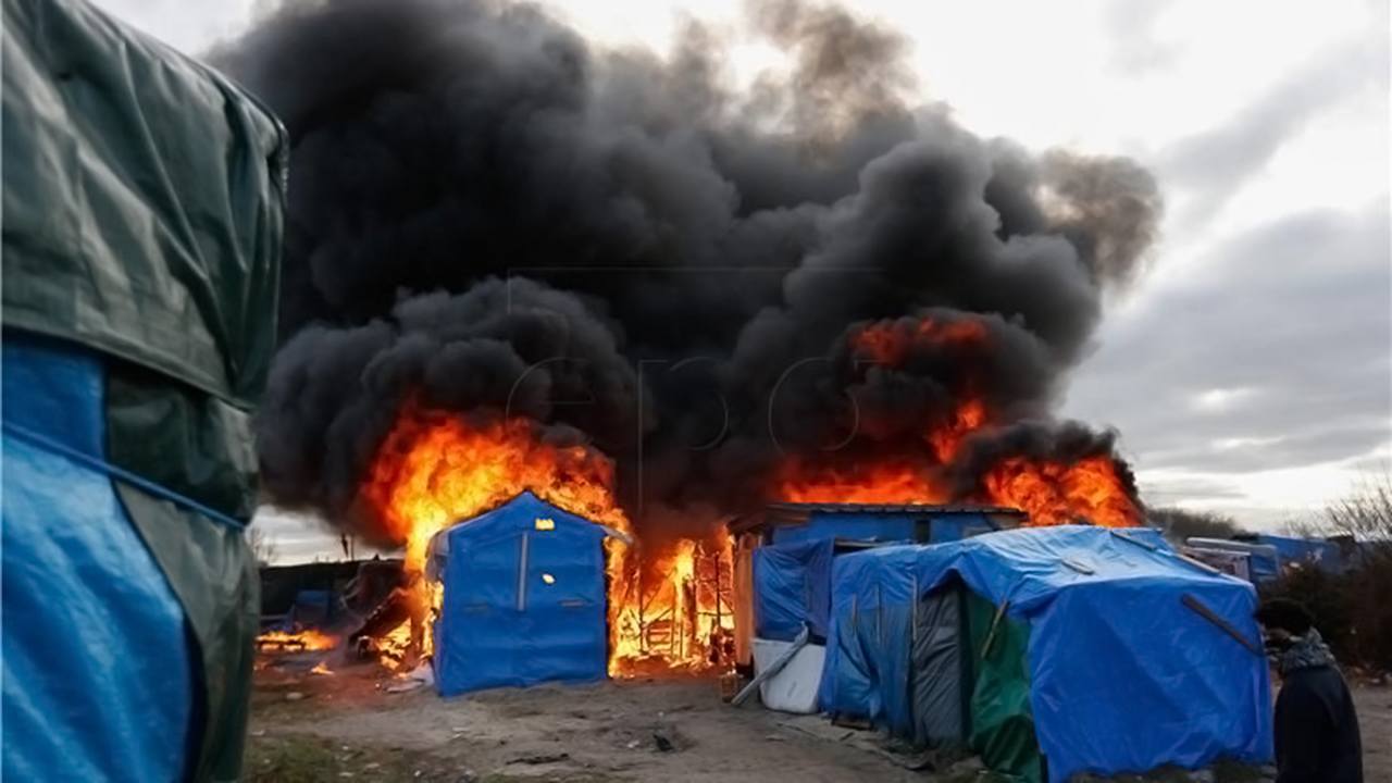 Prema izvješćima zapaljeno je 12 šatorskih nastamba a uhićene su četiri osobe. Vlasti namjeravaju preseliti migrante u prihvatilišta na drugim lokacijama.