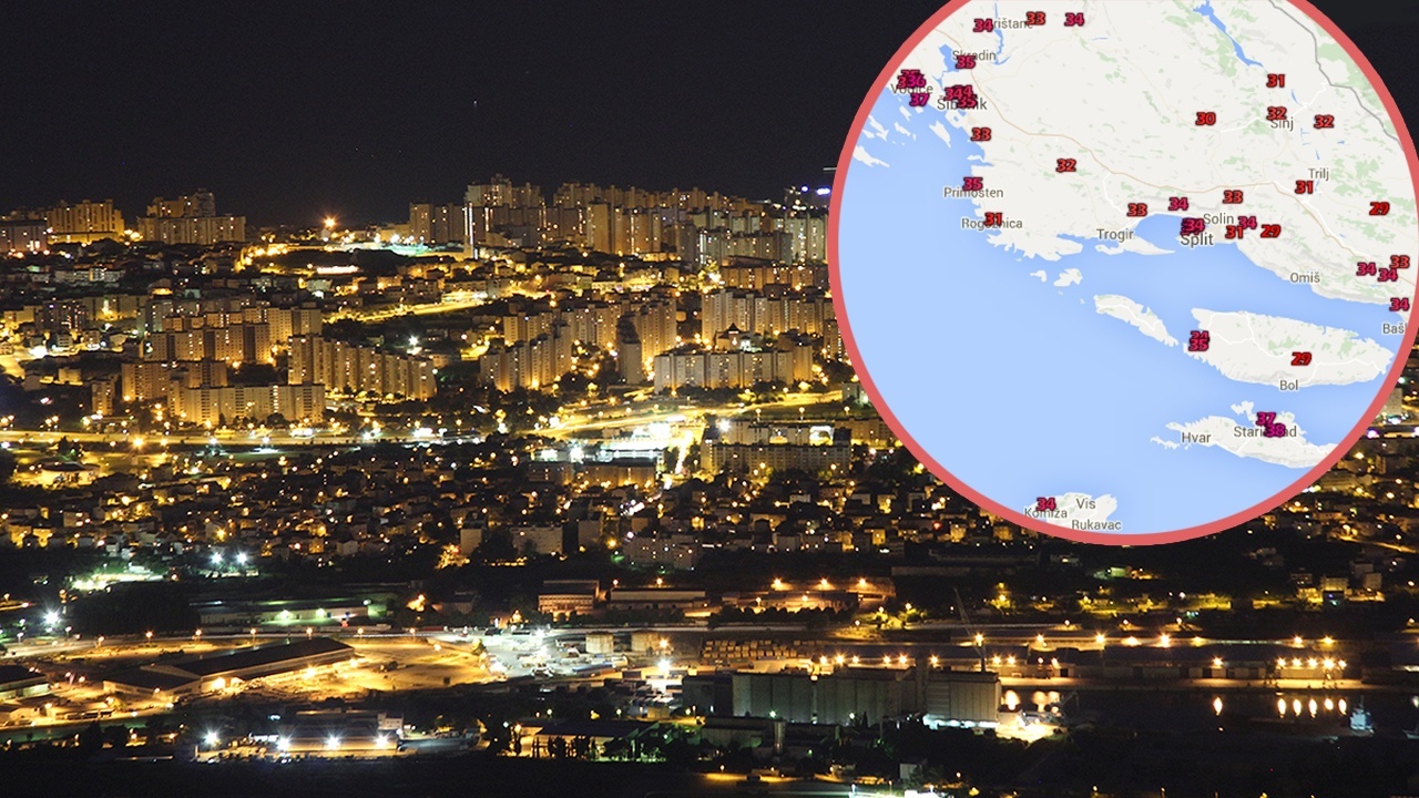 Tako su Splitu najniža temperatura zraka prošle noći nije padala ispod vrlo toplih 26°C (25,7°C). Vrlo slično bilo je u Kaštelima, Solinu, te podno Biokova. Spomenuta današnja minimalna temperatura zraka, izmjerena na službenoj meteorološkoj postaji DHMZ-a Split Marjan, uvjerljivo je najviša minimalna temperatura za datum 5. lipnja od početka službenih meteoroloških mjerenja! Do sada je rekord iznosio 23,5°C, a izmjeren je prije 32 godine.