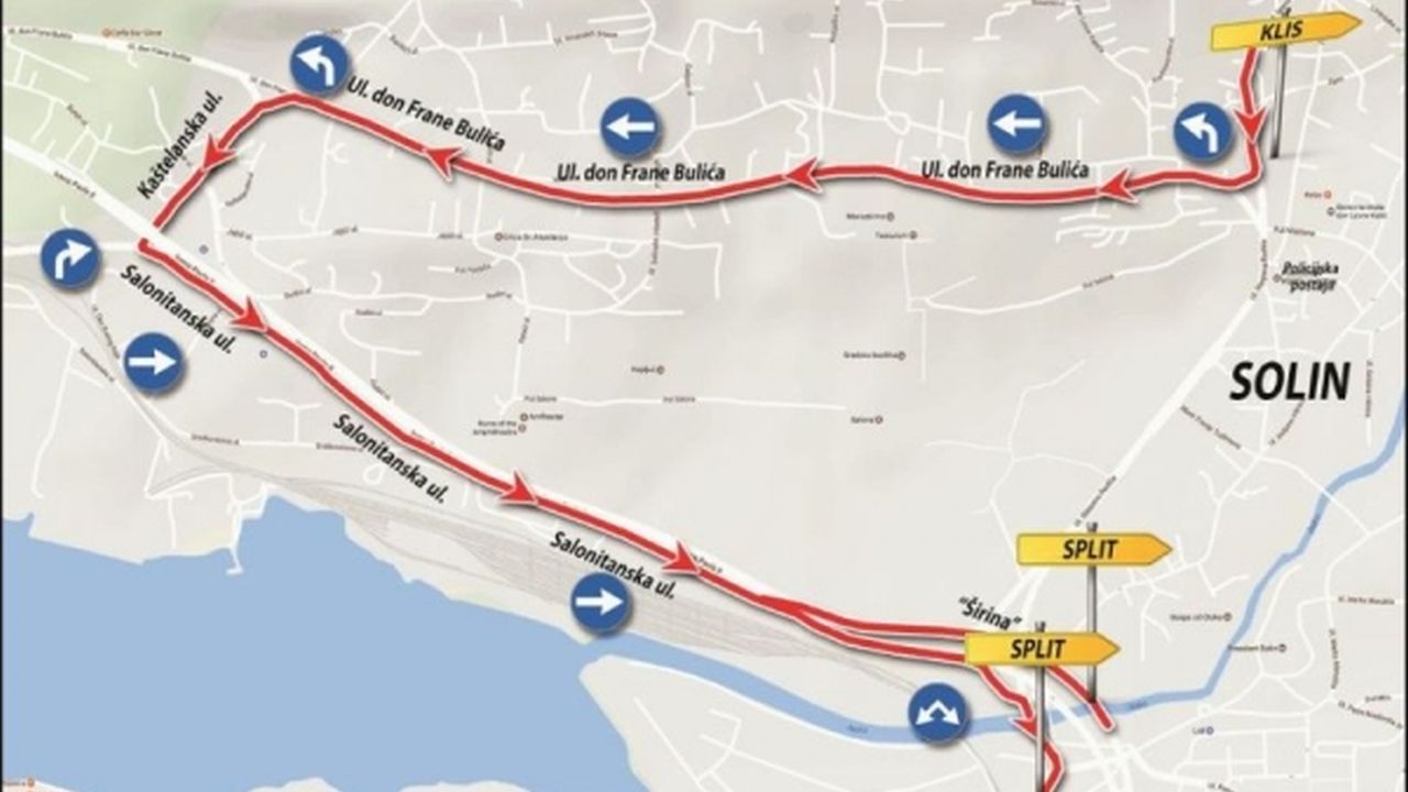 Iz toga razloga će se u ponedjeljak 6. veljače s početkom od 9 sati uspostaviti privremena regulacija prometa koja bi se odvijala na slijedeći način: Iz Splita promet bi se odvijao kao do sada prema Klisu i to Ulicom Stjepana Radića, a vozila iz pravca Klisa prometovat će alternativnim pravcima put Svetoga Kaja i to Ulicom don Frane Bulića, prema Kaštelanskoj pa Salonitanskom ulicom (poznatija kao Zaobilaznica) prema Širini.