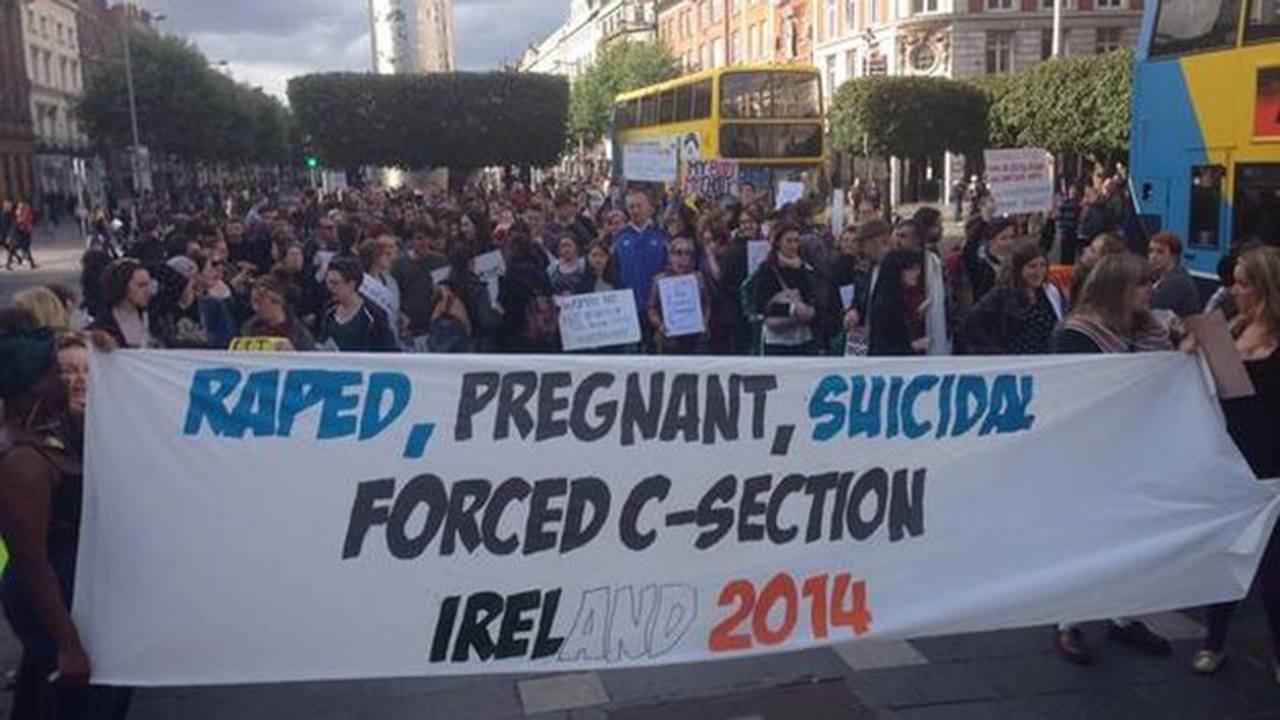 Stotine ljudi prosvjedovalo je u srijedu u Dublinu tražeći promjenu irskih zakona o pobačaju nakon što je žrtva silovanja rekla da joj je odbijen pobačaj i umjesto toga je rodila carskim rezom.