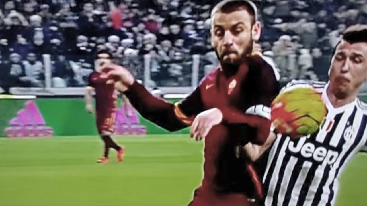 Sudac Banti je dosudio kazneni udarac za Romu smatrajući da je Mandžukić igrao rukom. Mandžukić se okrenuo sucu tvrdeći da nije on. Snimak jasno pokazuje da je loptu rukom gurnuo De Rossi, koji se okrenuo Mandžukiću i zapovjedio mu: “Šuti, govno cigansko!” – što se lako moglo pročitati s De Rossijevih usana, pa je komentirano i u televizijskom prijenosu.