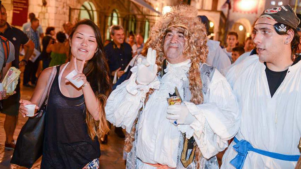 Kako javlja PortalOko, vesela povorka uz pjesmu i povike hvale novom Knezu prođirala se pored Gospe, Dvora, pa preko Zelene place ulicom Od puča uz obavezno stajanje i zdravicu kod legende Grada brijača Hrvoja Čikata Čikija! Prošli su Širokom, izašli na Stradun pa preko Peskarije stigli do Porporele, gdje se obavio veliki čin primopredaje vlasti dosadašnjeg Kneza Joza Mafijoza novom Knezu Neronu.
