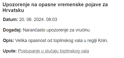 Pratite obavijesti na televiziji, radiju i na poveznicama Ravnateljstva civilne zaštite, stoji u poruci koja je došla stanovnicima i koja je objavljena na stranici 112hr.