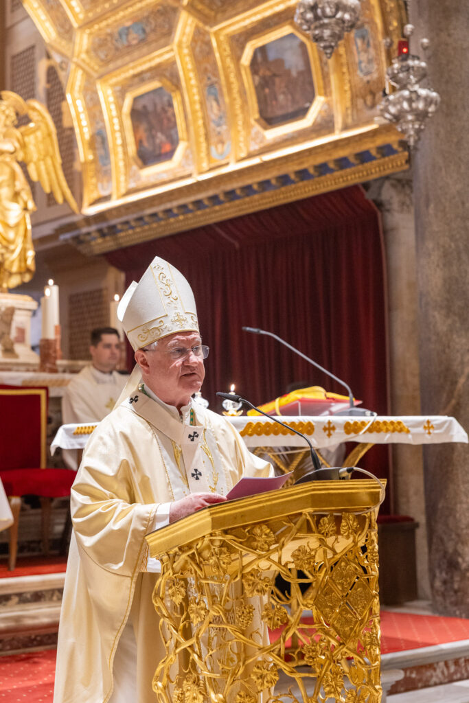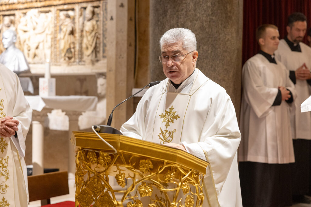 Nadbiskup je u homiliji, polazeći od čitanja iz Djela apostolskih, govorio o snazi prve Crkve koja je upravo u progonstvima rasla i širila se, istaknuvši kako ljudska logika u progonu vidi kraj, dok Božja logika iz kušnje izvodi novi život. Podsjetio je kako su se prvi kršćani, raspršeni nakon progona, pretvarali u navjestitelje Evanđelja te nisu šutjeli ni u teškim okolnostima, nego su iz osobnog susreta s Uskrslim crpili snagu za svjedočenje. U tom je svjetlu upozorio kako i danas vjernici često čekaju idealne uvjete da bi živjeli vjeru, premda upravo kušnje nerijetko rađaju najsnažnije svjedočanstvo jer „vjera koja je prošla kušnju postaje uvjerljiva, stamena“. Govoreći o Barnabi, kojega Sveto pismo opisuje kao „dobra čovjeka, puna Duha Svetoga i vjere“, nadbiskup je istaknuo kako upravo takvi ljudi privlače druge Bogu. Naglasio je da dobrota nije slabost, nego snaga srca oslobođena zavisti, dvoličnosti i potrebe za dominacijom, dok punina Duha znači djelovati iz Božjeg nadahnuća, a ne iz vlastite ambicije. Posebno je izdvojio Barnabinu sposobnost da se raduje darovima drugih i da bez straha dovodi Savla u Antiohiju, poručivši kako se „dobar čovjek ne boji rasta drugoga“, jer istinska vjera ne guši, nego ohrabruje i povezuje. Osvrćući se na evanđeosku sliku Dobroga Pastira, nadbiskup je istaknuo kako vjera nije tek prihvaćanje istina o Isusu, nego prepoznavanje njegova glasa u vlastitom životu. Naglasio je da Krist govori po Božjoj riječi, savjesti, molitvi, životnim događajima i potrebitima, ali da je za to potrebno nutarnje sabranje i tišina srca. Istaknuo je kako Isus svakoga čovjeka poznaje osobno, sa svim slabostima, ranama i borbama, te ga unatoč svemu ljubi i poziva k sebi. Zaključujući, nadbiskup je podsjetio na Kristovo obećanje da nitko neće ugrabiti njegove iz Njegove ruke, naglasivši kako je upravo ta sigurnost izvor nade u trenucima patnje, nesigurnosti i kušnji. Čovjek može pasti i udaljiti se, ali Bog ga ne prestaje tražiti i vraćati k sebi. Pozvao je vjernike da i sami ostanu uz Gospodina te da životom, više nego riječima, druge privode Kristu.