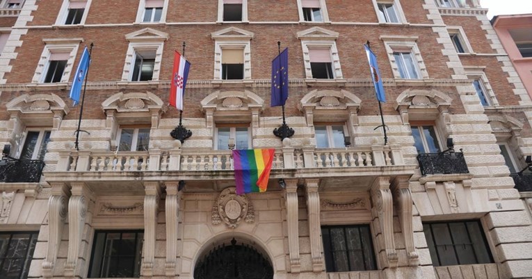 Zastava duginih boja izvješena na zgradi gradske uprave u Rijeci