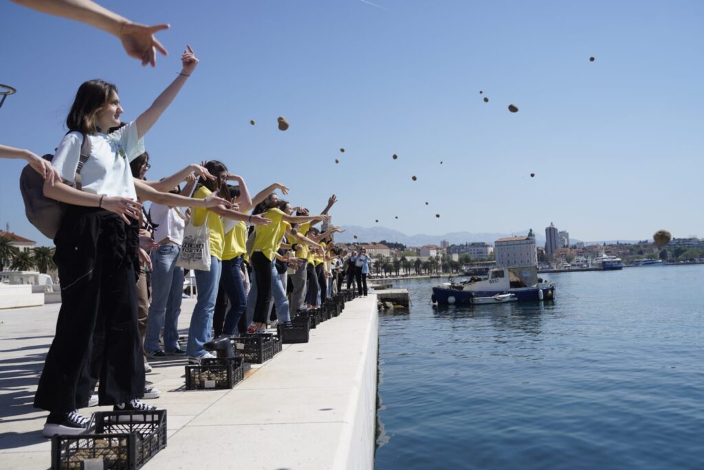 Uz aktivnosti u školskom atriju, polaznici programa CIP su na Matejušci, u sklopu projekta “Volim more” puštali bio kugle u more s ciljem pročišćenja morskog dna.