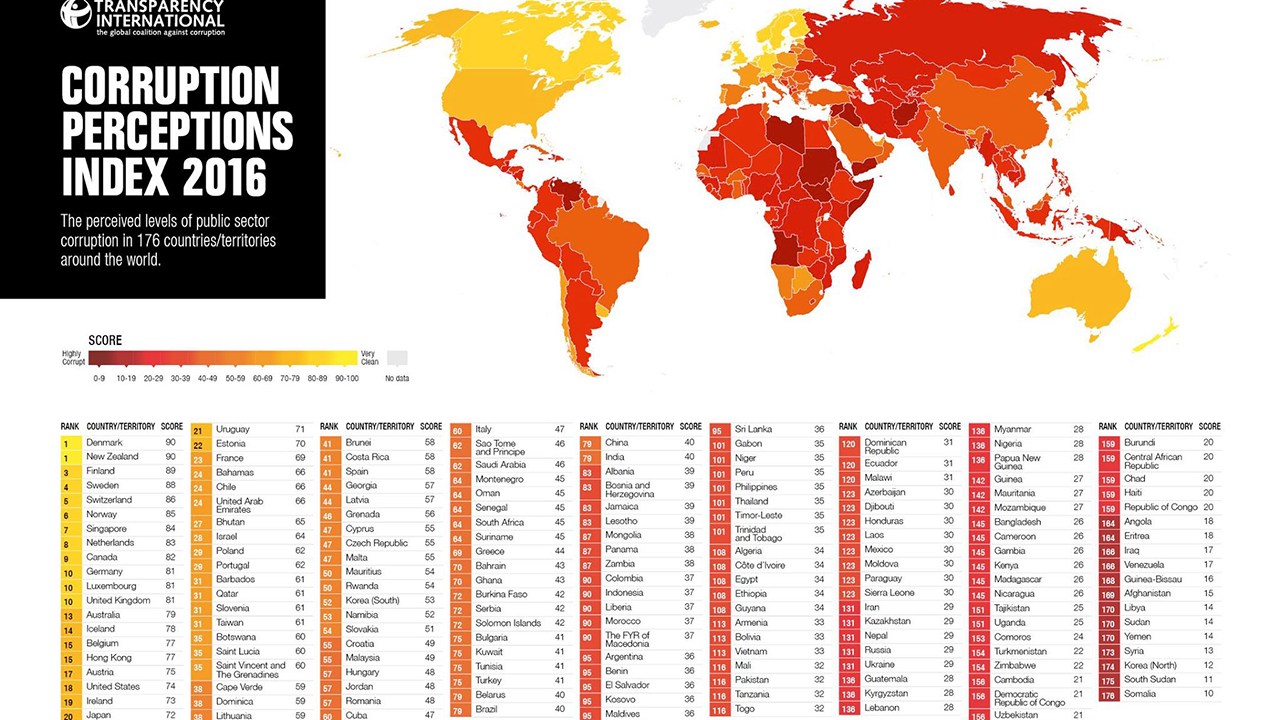 Prema istraživanju, najtransparentnije države u 2016. su Danska s