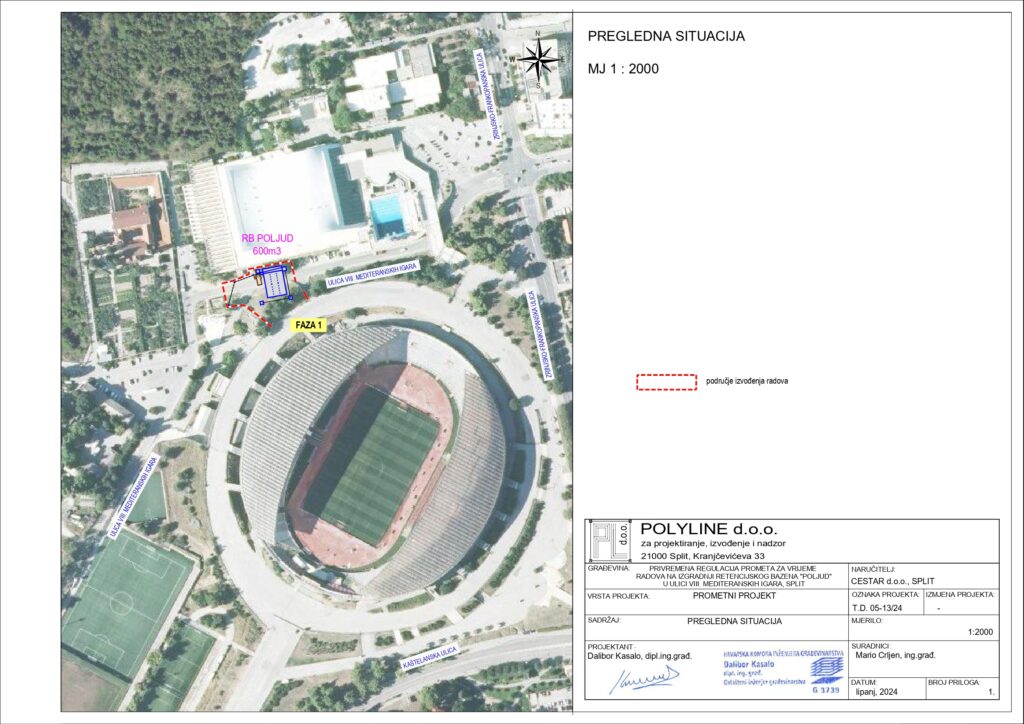 Shodno tome, u ponedjeljak, 17. lipnja na objektu RB Poljud započet će se s postavom privremene regulacije prometa i raščišćavanja okoliša, a uslijedit će radovi na zaštiti građevinske jame te zemljani radovi. Planirani rok dovršetka radova je 31. prosinca 2024. godine. Ulica VIII mediteranskih igara za cijelo vrijeme izvođenja radova na dijelu obuhvata RB Poljud bit će zatvorena za promet.