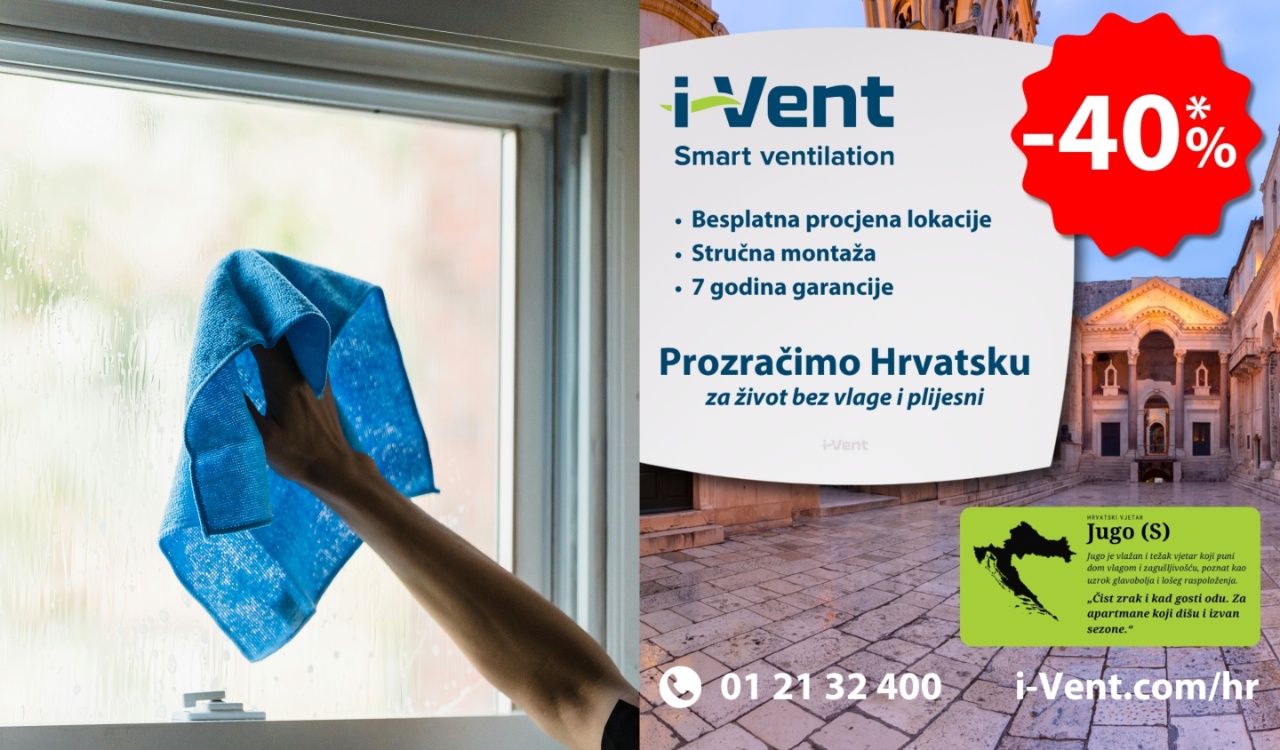 Akcija – 40 % popusta! Izvidi i montaže dostupni su po cijeloj Hrvatskoj. Ne čekajte novu sezonu vlage. Osigurajte si zdrav zrak na vrijeme. Obratite nam se već danas na [email protected] ili www.i-vent.com