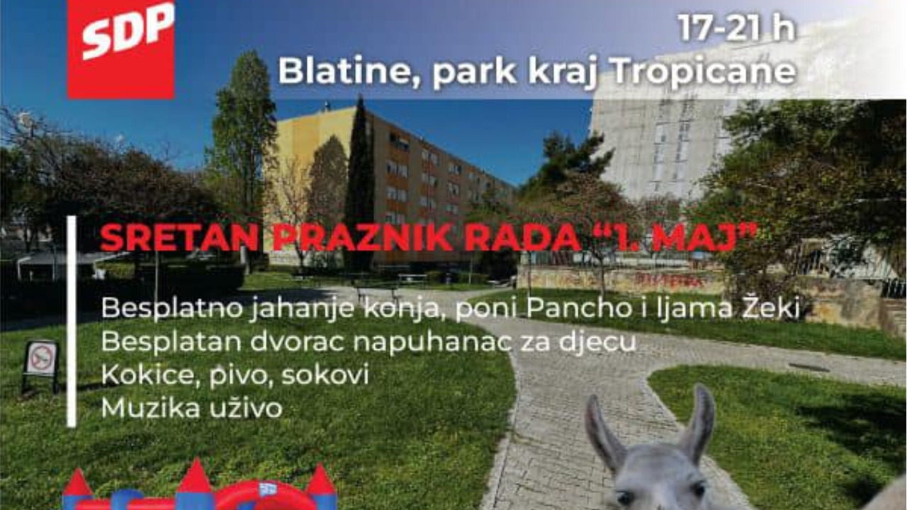 SDP vas poziva na proslavu Praznika rada u kvart Blatine-Škrape